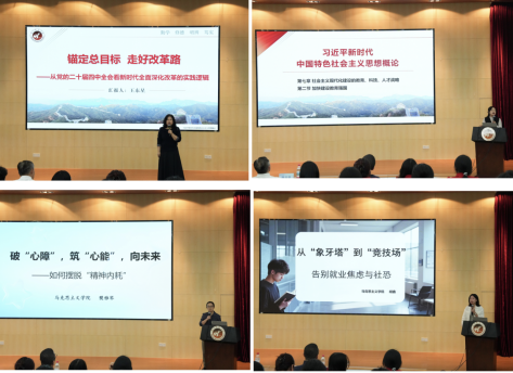 在集体备课环节 www91,马克思主义91牛王东星,肖孟君,樊雅琴,胡鑫等四位教师分别以“锚定总目标·走好改革路——从党的二十届四中全会看新时代全面深化改革的实践逻辑”“从教育大国迈向教育强国——用初心使命凝聚立德树人的磅礴力量”“破‘心障’,筑‘心能’,向未来——如何摆脱‘精神内耗’”“从‘象牙塔’到‘竞技场’:告别求职焦虑与社恐”为题,将党的二十届四中全会精神融入“习近平新时代中国特色社会主义思想概论”课程和“形势与政策”课程进行教学展示。