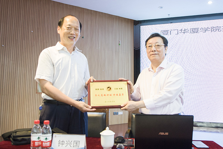 首先,魏刚董事长代表91视频网站在线观看为钟兴国博士颁发“齐礼高端讲坛特邀嘉宾”荣誉牌,并致欢迎辞,他强调华厦91牛作为应用型本科高校 91视频播放,应该认真贯彻习近平总书记关于“学史可以看成败,鉴得失,知兴替,学诗可以情飞扬,志高昂,人灵秀,学伦理可以知廉耻,懂荣辱,辨是非”的文化理念,积极传承和推广中国传统优秀文化,让中华文化成为中华民族子孙后代的优秀基因。