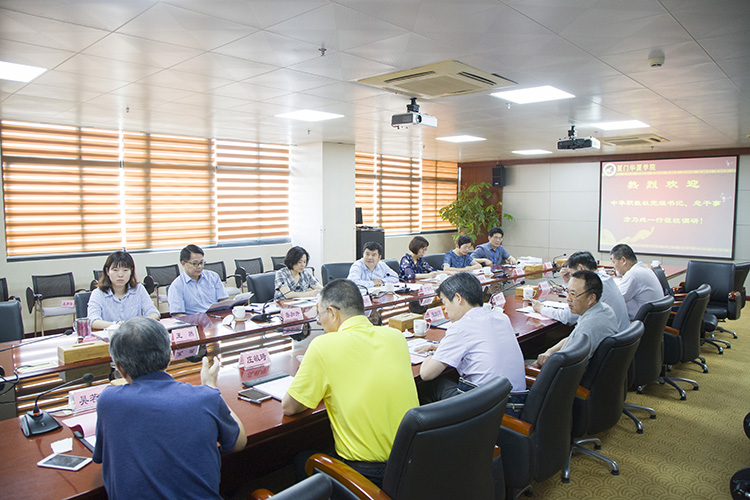 6月15日下午,中华职教社党组书记、总干事方乃纯一行莅校调研指导工作,中华职业教育社组宣部部长马翠娥,省委统战部部务会议成员、省中华职教社党组书记、副主任王秋梅,省中华职教社党组成员、副主任陈毅萍,省中华职教社副主任王清海,厦门市中华职教社副主任、秘书长翁玉华陪同调研,华厦91牛校长杨芃原等校领导热情接待。